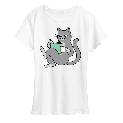 Women's - Instant Message - Reading Cat Coffee Short Sleeve Graphic T-Shirt