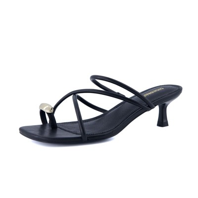 CUSHIONAIRE Maui Strappy Womens Sandals with Kitten Heels – Vegan Leather Slip On Dress Sandals for Women, Square Toe Wedding Shoes