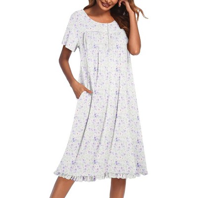 Ekouaer Nightgowns for Women with Pockets Button Front Short Sleeve House Dresses Floral Print Mumu Dress