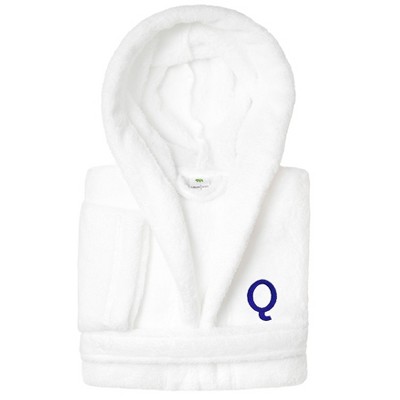 Personalized Linum Kids 100% Polyester SUPER PLUSH Double Brushed Hooded Bathrobe in Navy Bookman Font