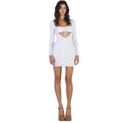 Slickblue Chic Knit Mini Dress with Cut-out Bustier, Lace Detail, Sexy Slim Fit for Night Out, Color & Size Options