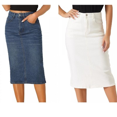 Allegra K Women's Casual High Waist Stretchy Midi Jean Skirt 2 Packs