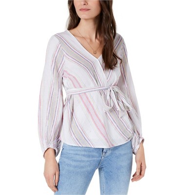 I.N.C International Concepts Womens Striped Wrap Blouse
