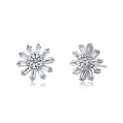 Guili Stunning White Gold Plated Cubic Zirconia Snowflake Cluster Drop Earrings Ð Sparkling, Elegant Jewelry with a Winter-Inspired Design