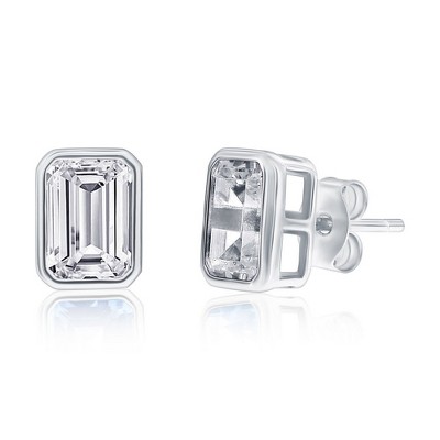 Bella Silver Sterling Silver Square Baguette CZ Stud Earrings - Silver