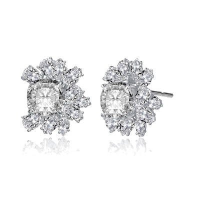 Guili Floral Radiance Rhodium Plated Sterling Silver Earrings with Cubic Zirconia arranged in flower shape for a soft sparkling statement