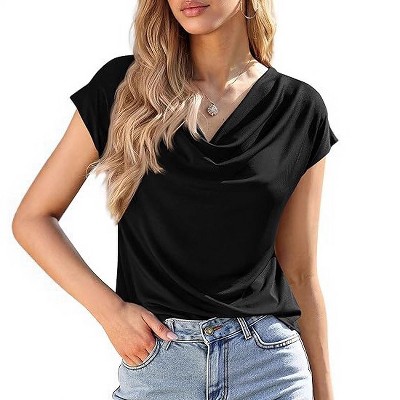 Coolmee Womens Summer Shirt V Neck Casual Tshirts Puff Sleeve Solid Color Tops