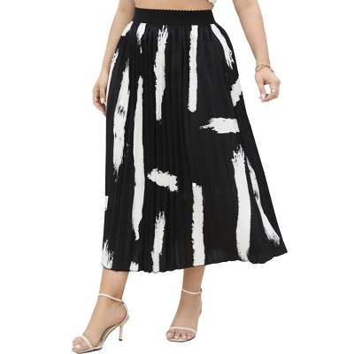 Clearlove Plus Size Pleated Skirt Women's Elastic Waist Boho Midi Skirts with Pockets