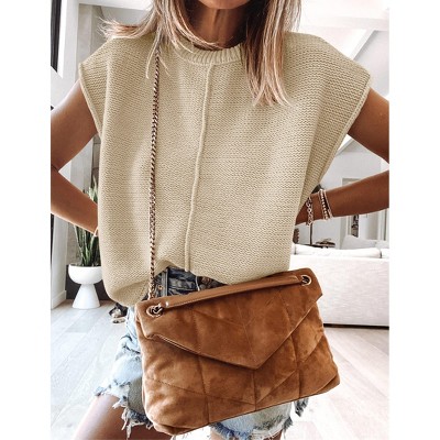 Womens Cap Sleeve Sweater Vest Crew Neck Knit Sleeveless Tank Tops Casual Lightweight Pullover Sweaters