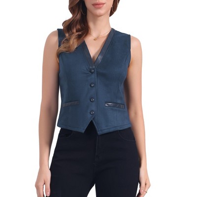 INSPIRE CHIC Women's V Neck Faux Suede Button Down Side Pockets Sleeveless Vest