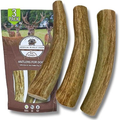 WhiteTail Naturals Medium Deer Antler Dog Chews – 3 Pack | Long-Lasting Natural Chew Bones for Medium Dogs | Odorless & Safe Alternative to Rawhide
