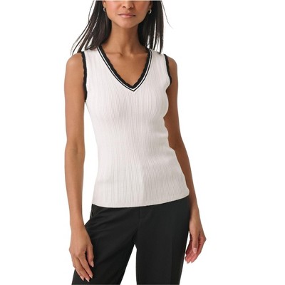 Karl Lagerfeld Womens Lace Trim Sweater Tank Top
