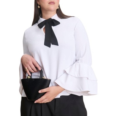 ELOQUII Dramatic Neck-Tie Poplin Shirt
