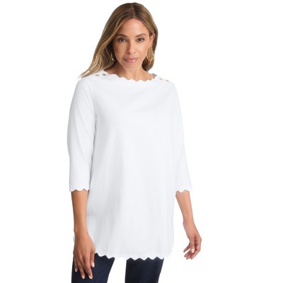 Jessica London Stretch Cotton Crochet Notch Neck Tunic
