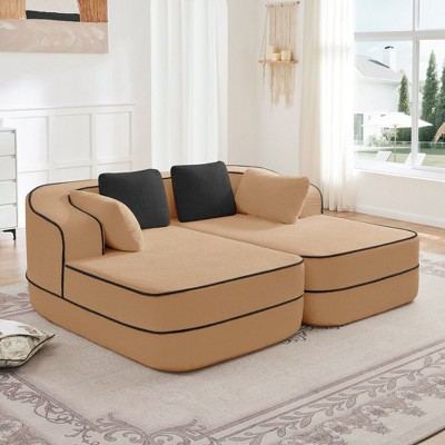 - curved tufted sofa