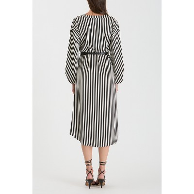 August Sky Women's Stripe Round Neck Belted Shirt Dress