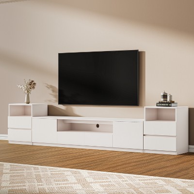 ATJafurn 118.2" Entertainment Center for 65/70/75'' TV, Included TV Stand and Two Floor Nightstands, 3-Piece Lighted Media Console for Living Room
