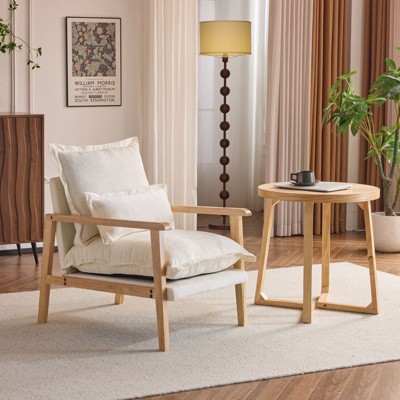 - tufted wood armchair beige threshold