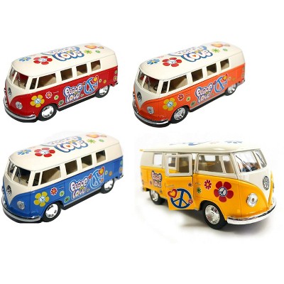 Set of 4: 5" Classic 1962 Volkswagen Van with Decal 1:32 Scale (Green/Maroon/Red/Yellow)