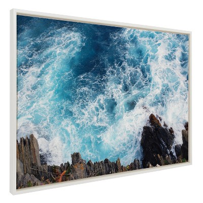28" x 38" Sylvie Sea Foam Framed Canvas by Rachel Bolgov White - Kate & Laurel: Nautical Wall Decor, Ocean Art