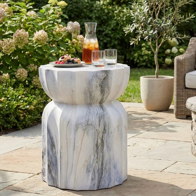 - white faux stone patio accent table