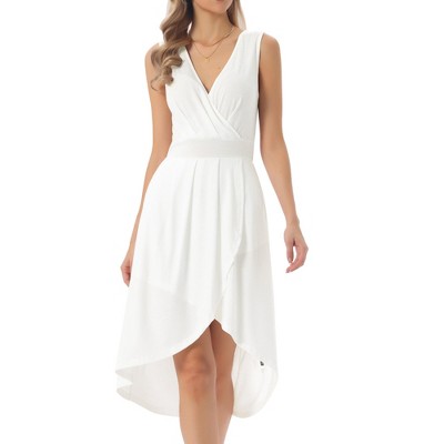- sleeveless white wrap dress