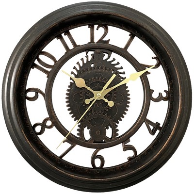REGALWOVEN Plastic Silent Battery Powered Rustic Farmhouse Gear Wall Clock 11 x 11 Inches