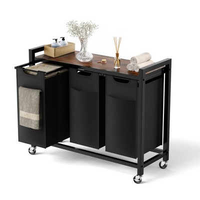 - sterilite laundry hamper flip top lid retractable pull handle wheels