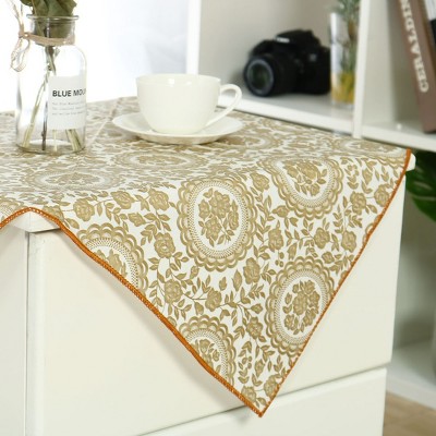 PiccoCasa Vinyl Water Oil Resistant Golden Turntable Flower Printed Tablecloths 53" x 53" 1 Pc