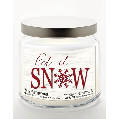Courtside Market Let it Snow Candy Cane 12.8oz Soy Wax Candle Glass Jar with Brushed Silver Metal Lid