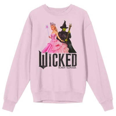 Wicked: Part 1 Glinda and Elphaba Green and Pink Adult Cradle Pink Long Sleeve Hoodie