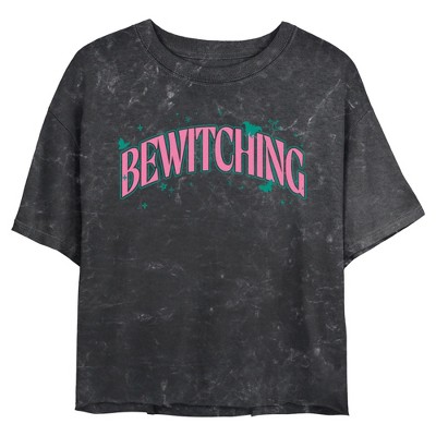 Junior's Wicked Bewitching Arched Text Crop T-Shirt