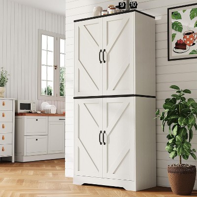 LinTimes 4-Door Pantry Cabinet with Charging Station, Kitchen Storage Buffet, 8 Adjustable Shelves, 41-Inch Countertop, Anti-Tip Kit, Engineered Wood