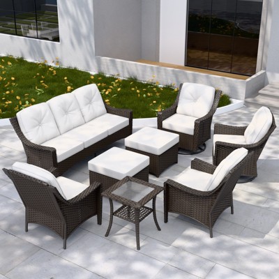 Marlton 9pc Wicker Outdoor Patio Furniture Set Conversation Sofa Sectional with Swivel Chairs and Cushions