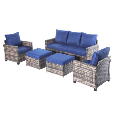 Decksplore 5-Piece Patio Furniture Set All-Weather Wicker Outdoor Sofa with Cushions, Durable Conversation Set for Deck, Garden