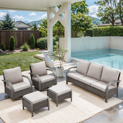 UPTIOT 5-Piece Wicker Patio Conversation Set Outdoor Lounge Chair