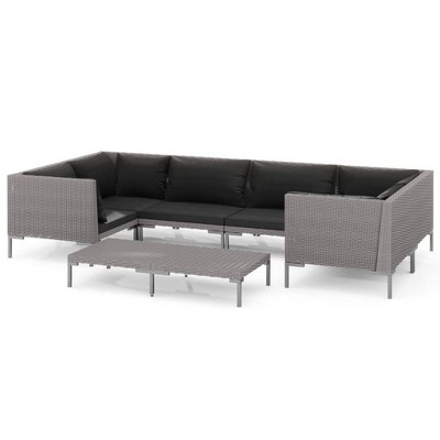 vidaXL Patio Lounge Set Outdoor Sectional Sofa Set with Table Poly Rattan Gray