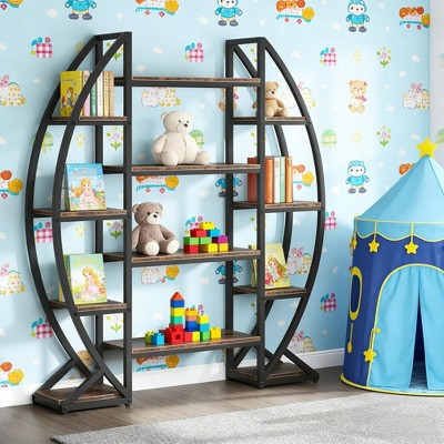 58" Industrial Bookcase,Triple Wide 4 Tiers Industrial Bookshelf with 11 Open Display Shelves