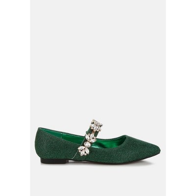 Navik Rhinestone Buckle Metallic Ballerinas