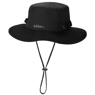 Solaris Wide Brim Outdoor Bucket Hat for Women Men Fishing Hiking, UPF 50+ Lightweight Sun Hats with Windproof Drawstring Mesh Ventilation (Black)