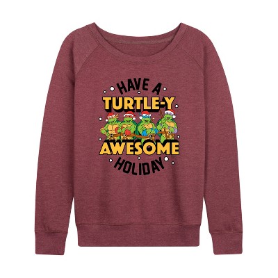 Women's - Teenage Mutant Ninja Turtles - Turtley Awesome Group Lightweight French Terry Wide Neck Long Sleeve Graphic Shirt