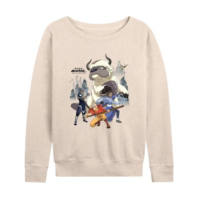 Women's Avatar Airbender Group Lightweight French Terry Wide Neck Long Sleeve Graphic Shirt - Birch - 4X