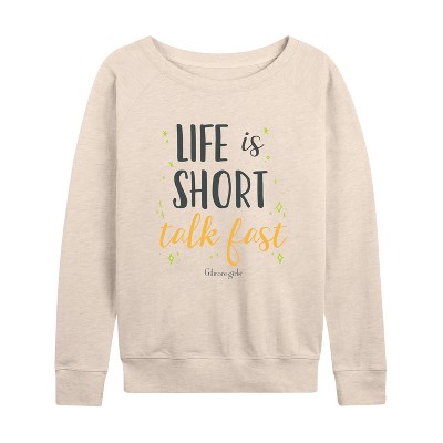 Women's Gilmore Girls Life Is Short Talk Fast Lightweight French Terry Wide Neck Long Sleeve Graphic Shirt - Birch - 2X