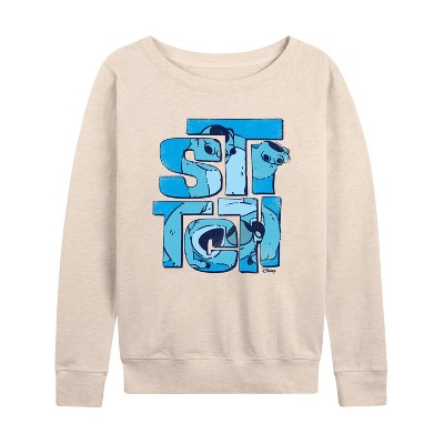 Women's - Lilo & Stitch - Stitch Stack Lightweight French Terry Wide Neck Long Sleeve Graphic Shirt