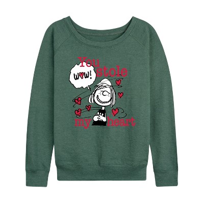 Women's - Peanuts - Patty Stole My Heart Lightweight French Terry Wide Neck Long Sleeve Graphic Shirt