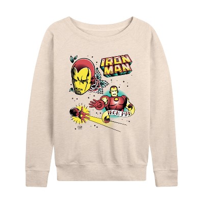 Women's - Marvel - Iron Man Action Figure Lightweight French Terry Wide Neck Long Sleeve Graphic Shirt