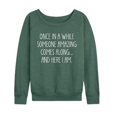 Women's - Instant Message - Once In A While Lightweight French Terry Wide Neck Long Sleeve Graphic Shirt