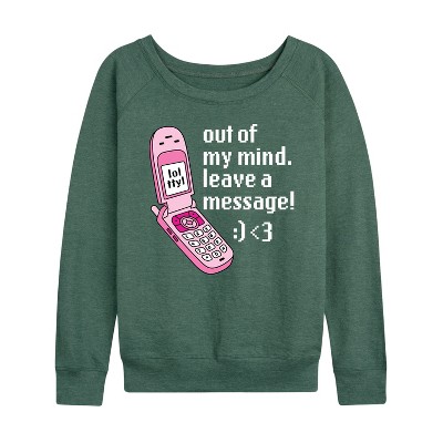 Women's - Instant Message - Out Of My Mind Leave A Message Lightweight French Terry Wide Neck Long Sleeve Graphic Shirt
