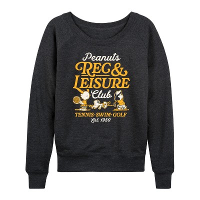 Women's - Peanuts - Rec And Leisure Club Lightweight French Terry Wide Neck Long Sleeve Graphic Shirt
