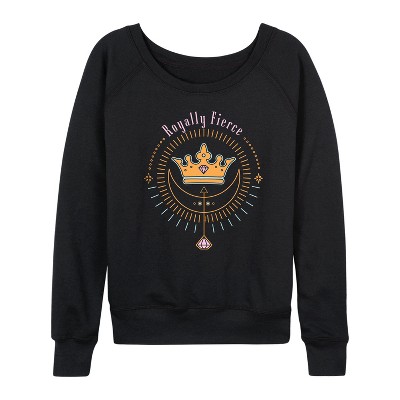 Women's - Disney Princess - Royally Fierce Lightweight French Terry Wide Neck Long Sleeve Graphic Shirt